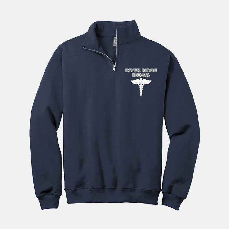 Jerzees® brand quarter zip for River Ridge High School HOSA, with a logo on the front chest and a larger logo on the back.